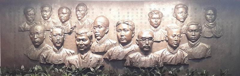 一是13尊与真人一样大小的雕像。在当年开会的地点,摆了一张当年的桌子,13名一大代表围成一圈开会。在会议主席的位置上,毛泽东毅然站立,器宇轩昂,神采奕奕,精神焕发,挥舞右手,为中国人民指引航程。董必武、李达等人坐在两边,用崇敬的眼光仰望着伟大领袖。张国焘、陈公博、周佛海等人则龟缩在一个阴暗的角落里,用阴险龌龊的眼光仰望着正在主持会议的伟大领袖。